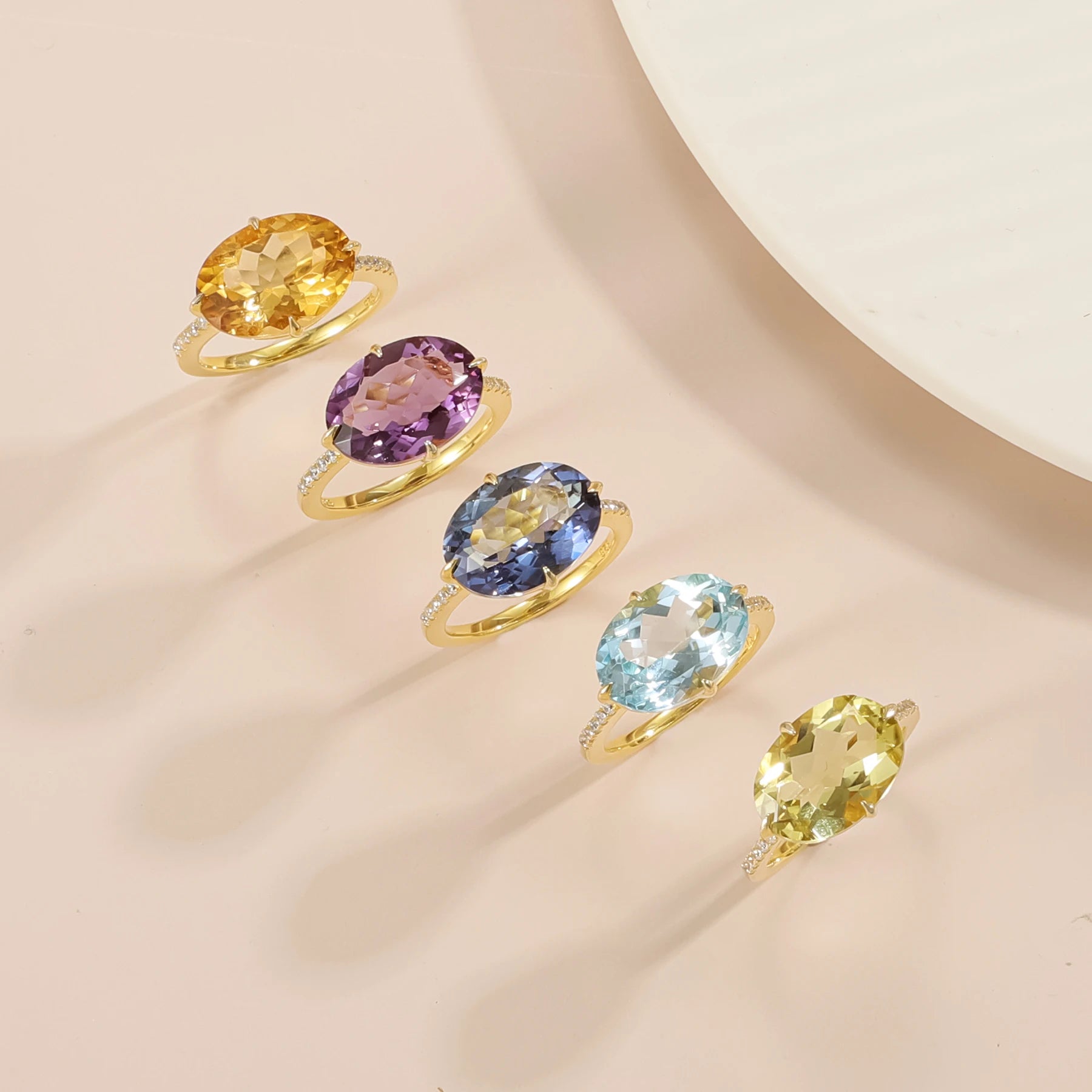 Cocktailringe mit großen ovalen Edelsteinen Amethyst Topas Citrin Zitronenquarz Mystischer Quarz