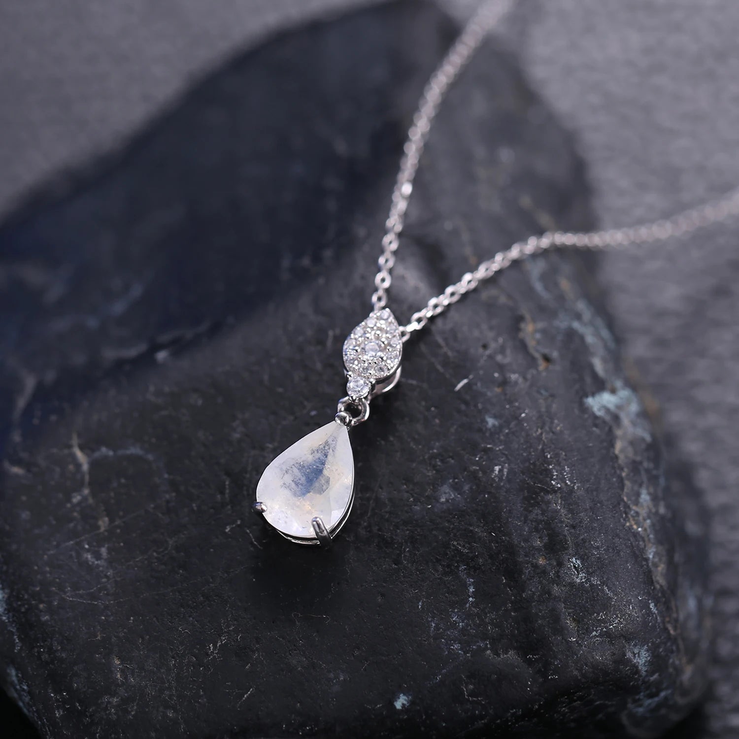Hergestellt aus 925er Sterlingsilber, ist diese Mondstein-Halskette zart, langlebig und hypoallergen. Sie werden eine Prägung sehen, wo sie angebracht ist.