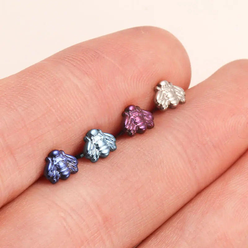 This titanium labret stud with the bee is made of ASTM F136 implant-grade titanium – the kind used in surgical implants.