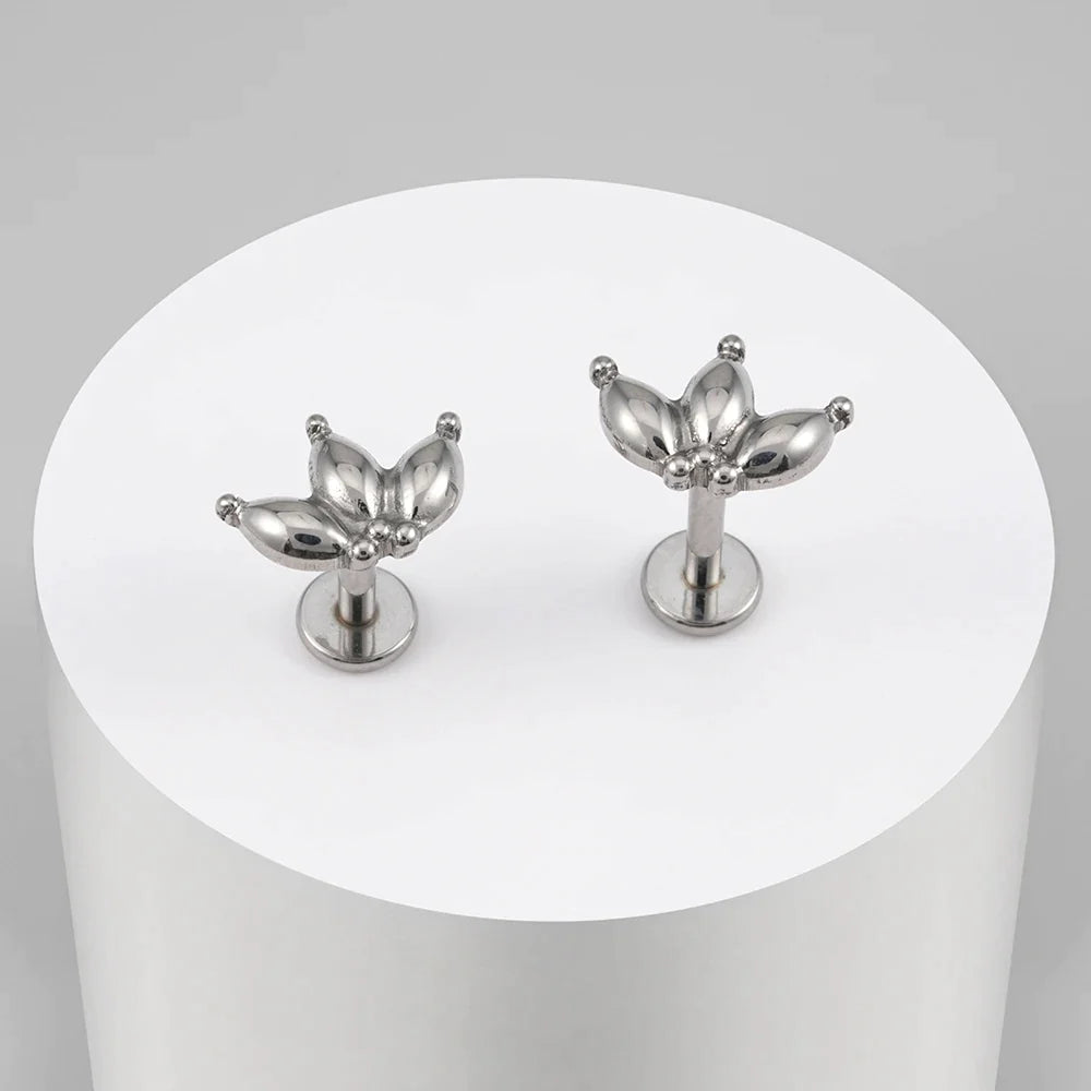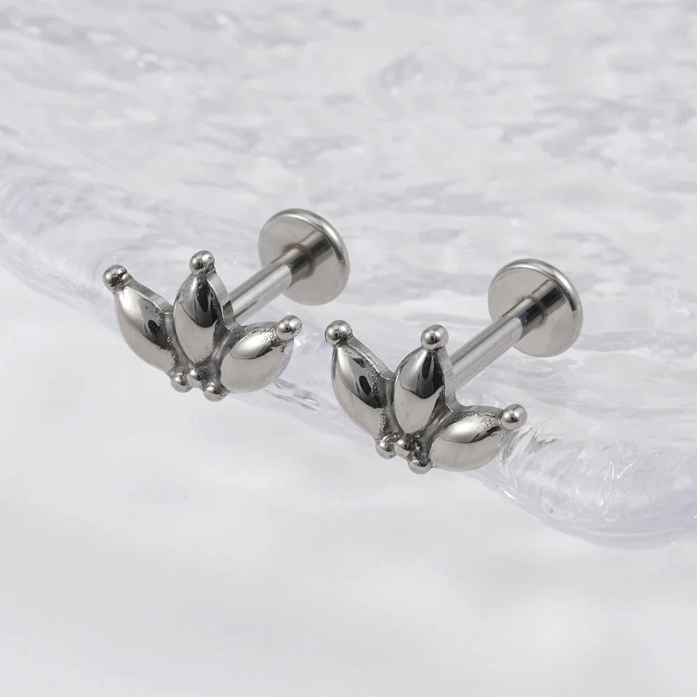 Ashley labret piercing with three leaves gold and silver titanium stud 16G internally-threaded Ashley Piercing Jewelry