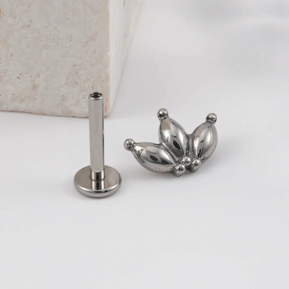 Ashley labret piercing with three leaves gold and silver titanium stud 16G internally-threaded