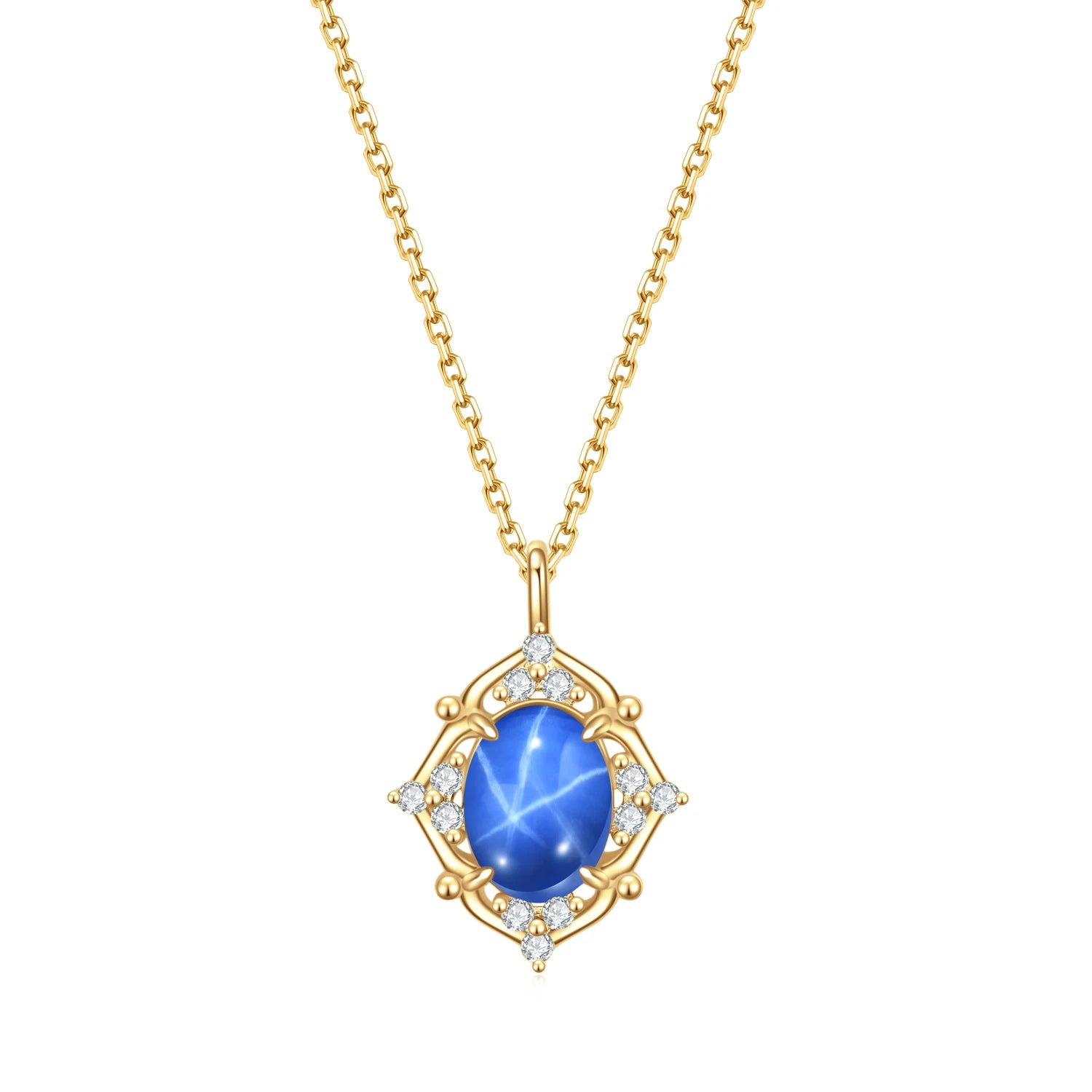 Este collar de zafiro estrella azul luce una piedra de zafiro estrella azul creada en laboratorio. El zafiro es la piedra natal de septiembre y el regalo ideal para el 45.º aniversario de bodas. Es una piedra de sabiduría, intuición y visión.