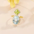 Une bague époustouflante en topaze bleue et péridot