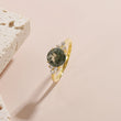 Bague en agate mousse avec une agate mousse ronde et trois cz de chaque côté, bague de promesse en or