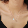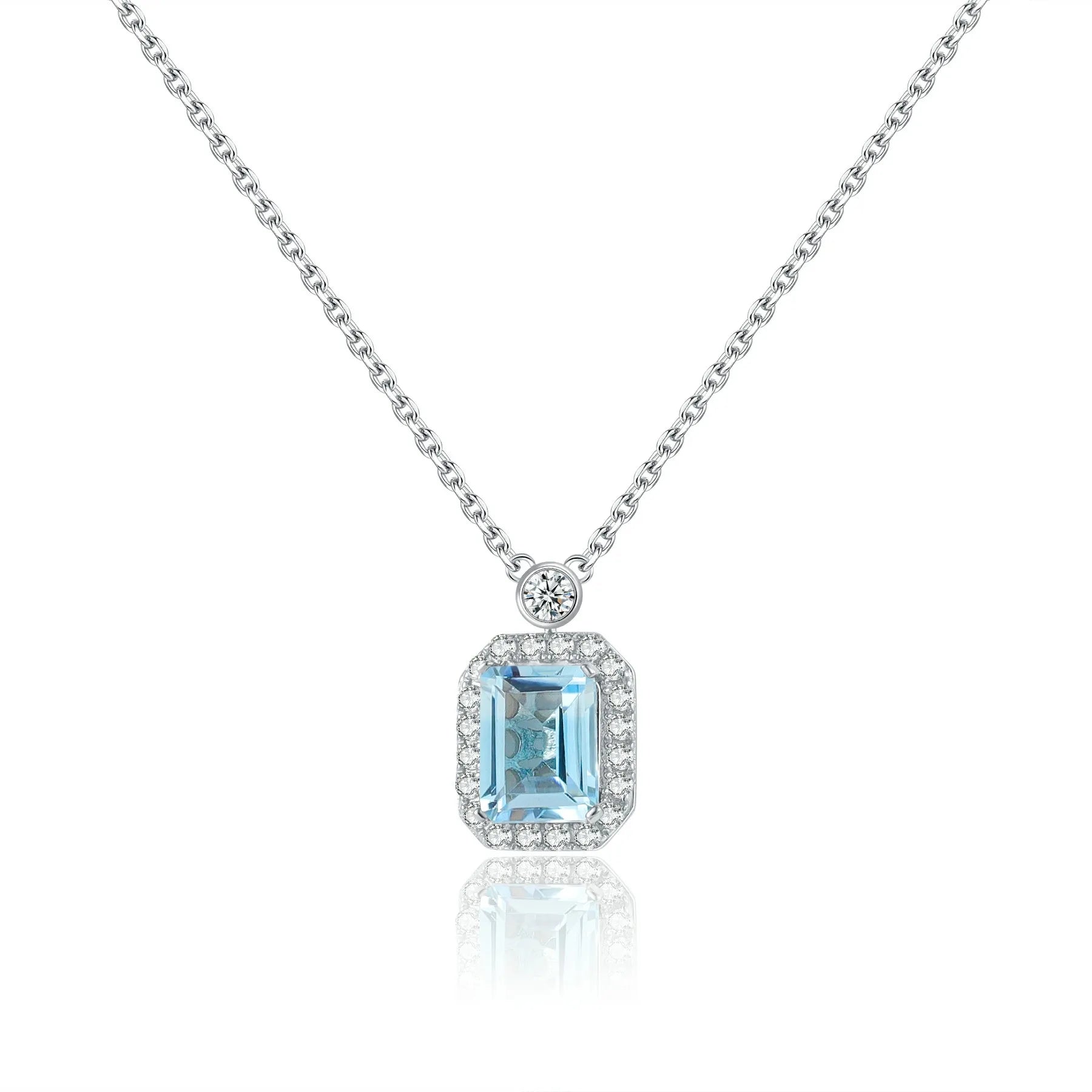 Collana con topazio portafortuna e ciondolo in argento con topazio azzurro cielo naturale e pietre di zirconia cubica trasparenti e diamanti.