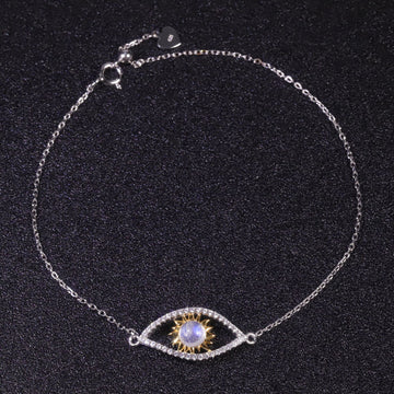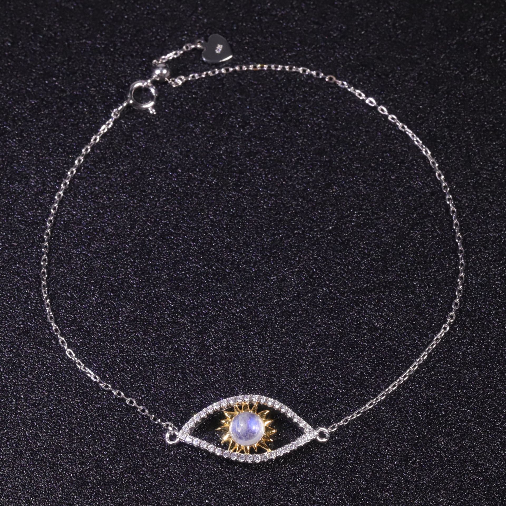 Braccialetto Evil Eye con pietra di luna vera, bracciale in argento con pietra di luna, bracciale con pietra portafortuna