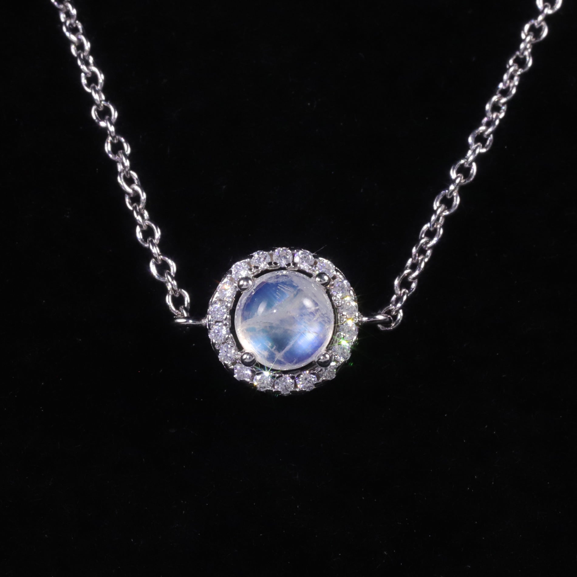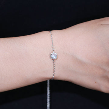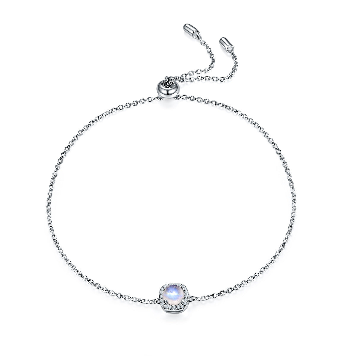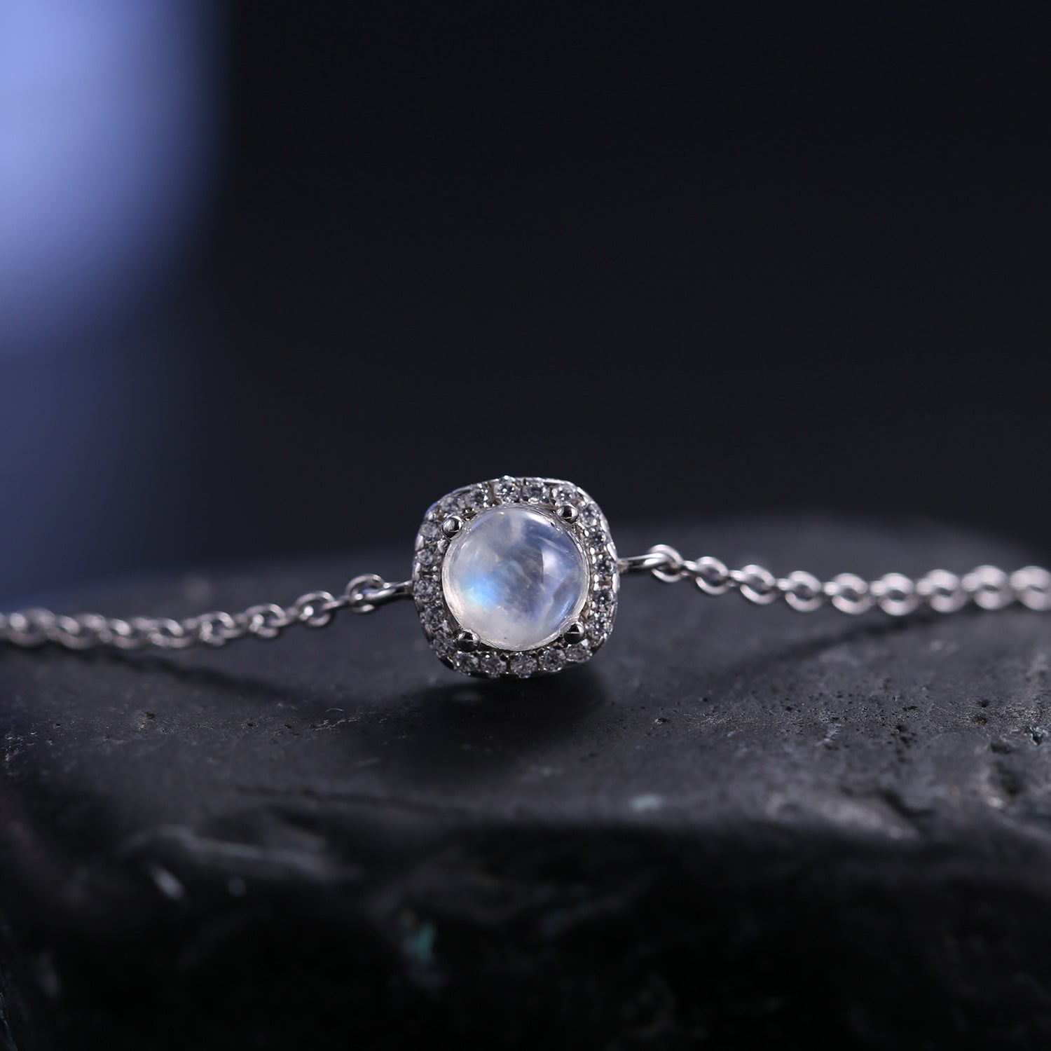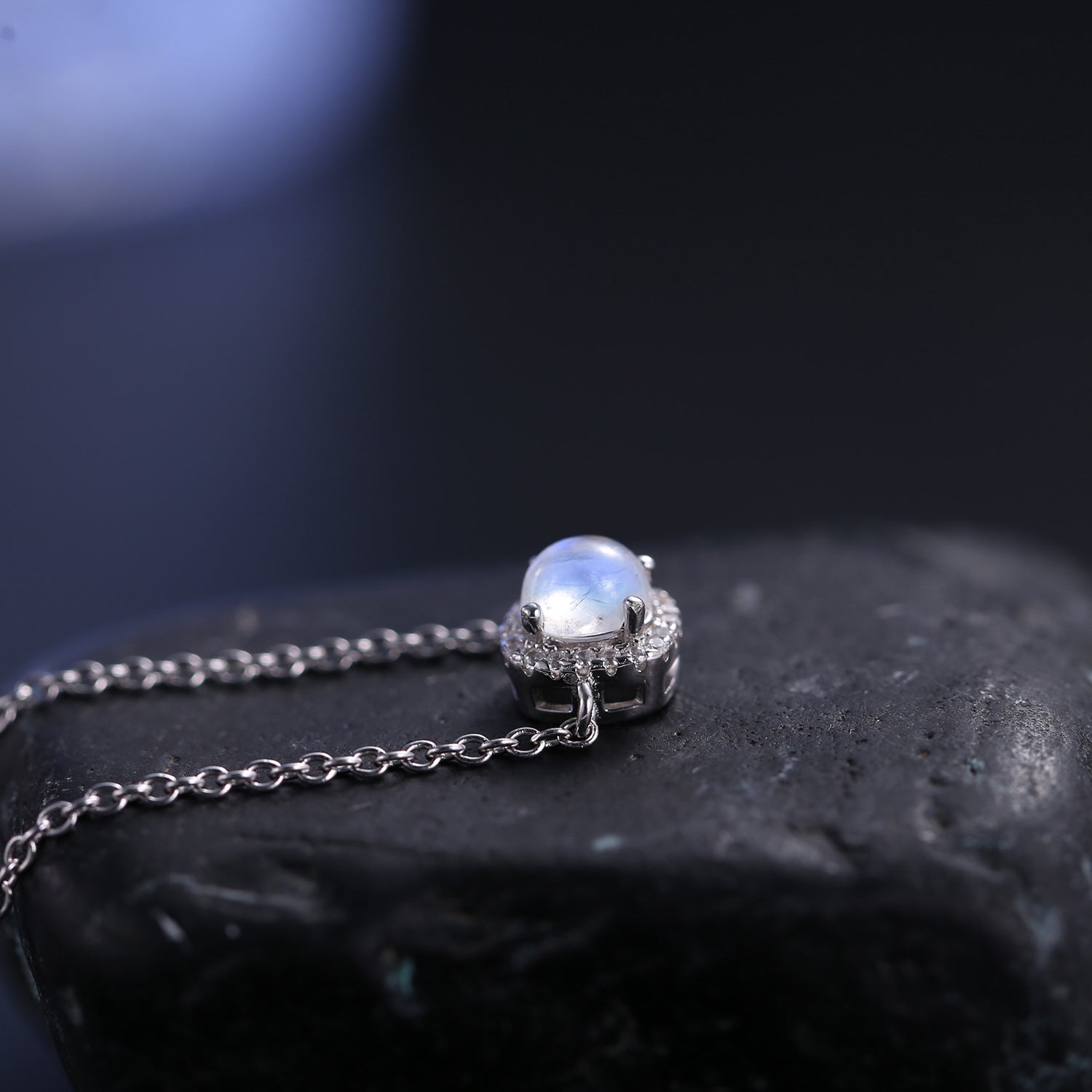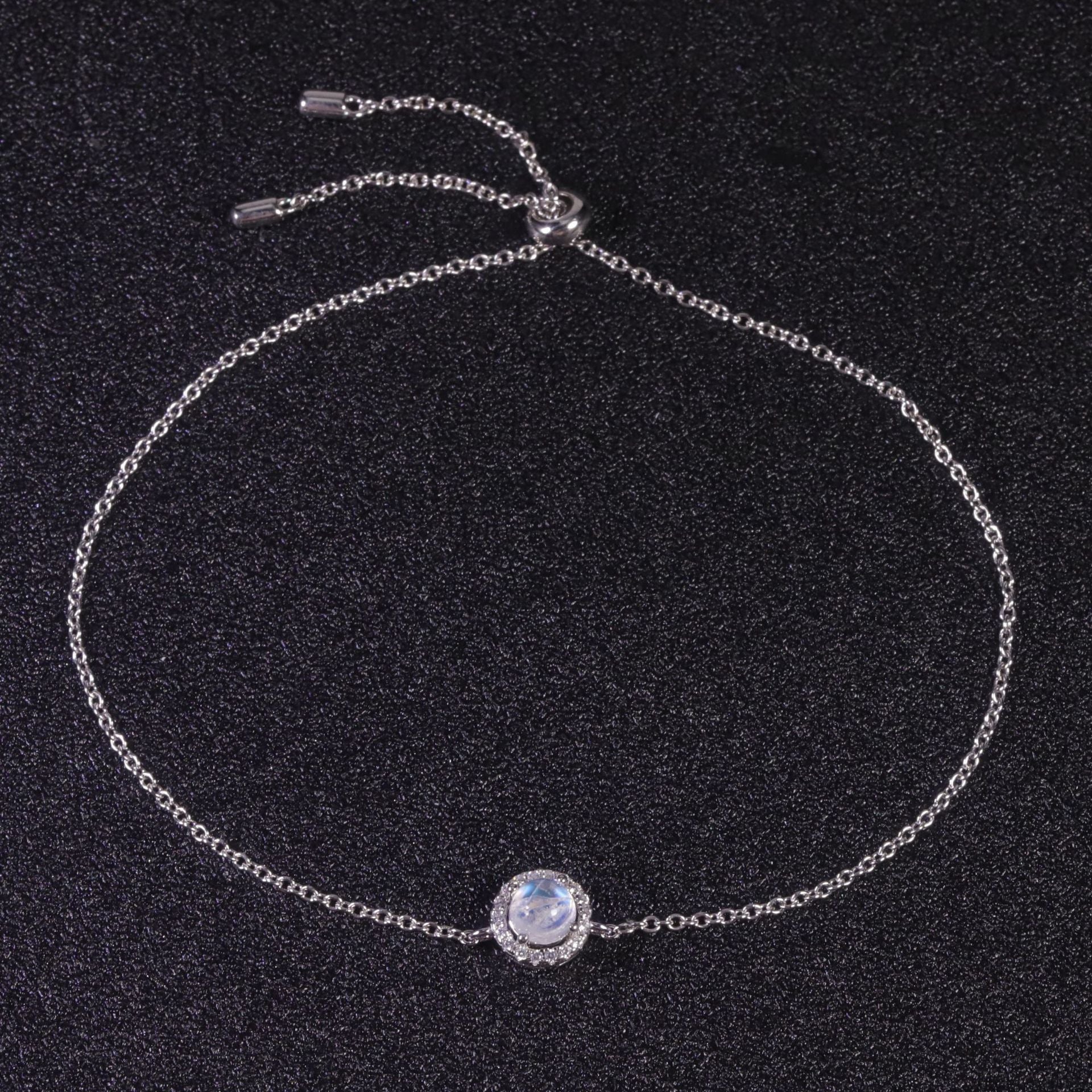 Bracciale in pietra di luna con ciondolo rotondo in pietra di luna, delicato e classico, per donna, in argento