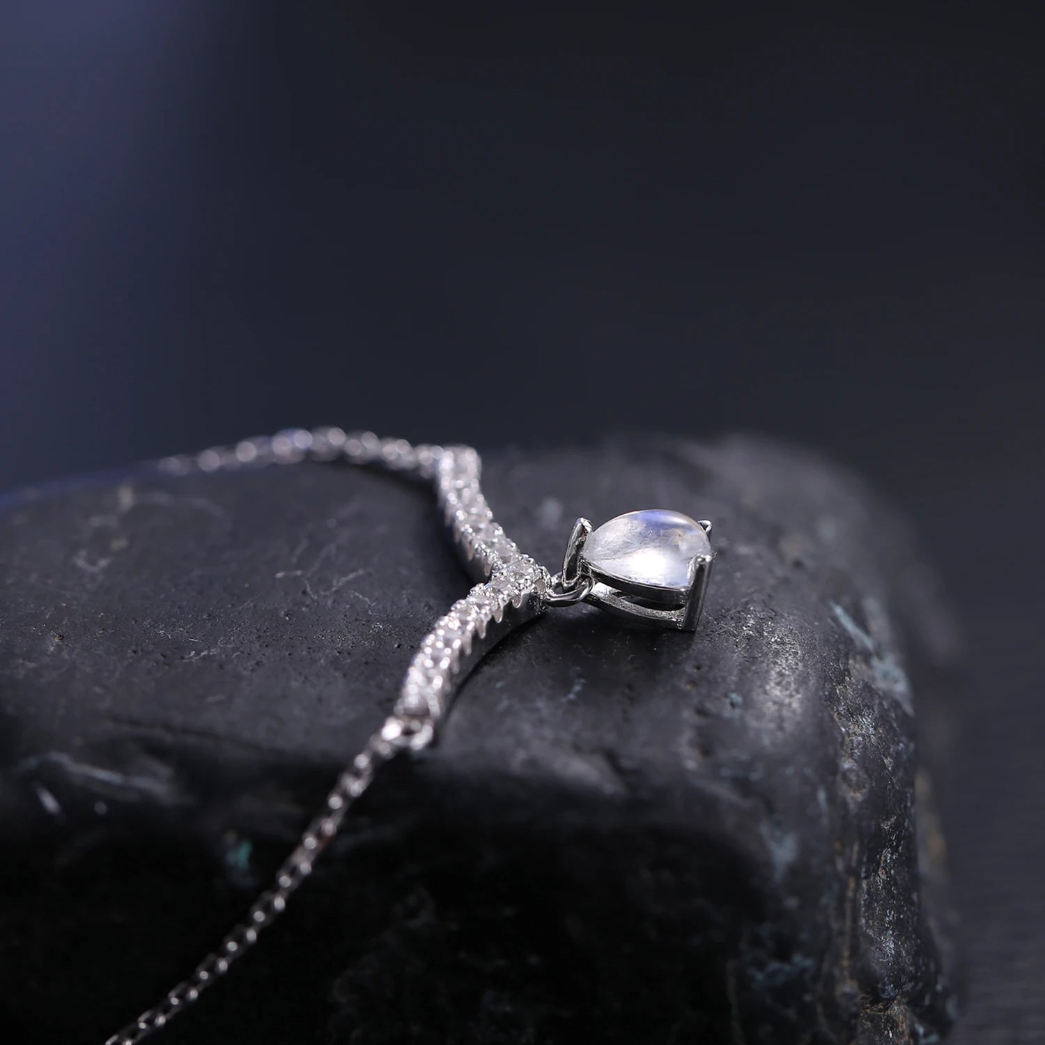 Realizzata in argento sterling 925, questa collana con pietra di luna a forma di V è delicata, resistente e ipoallergenica. Troverai un timbro dove viene applicata.