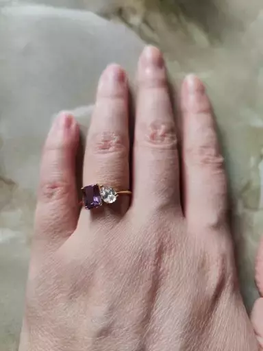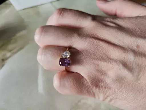 You and me ring with a color-changing alexandrite stone and a clear cz