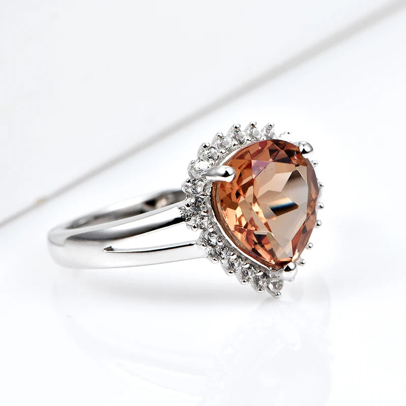 Sølvring med zultanitt med pæreformet zultanitt og klare cz-stener